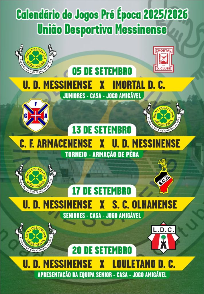 A nova época está mesmo a chegar e a União Desportiva Messinense (UDM) já aquece motores com uma pré-época recheada de jogos interessantes, cheios de emoção e rivalidade saudável. Eis o calendário: